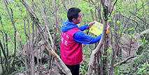 志愿者自購玻璃鋼垃圾桶安放山林間