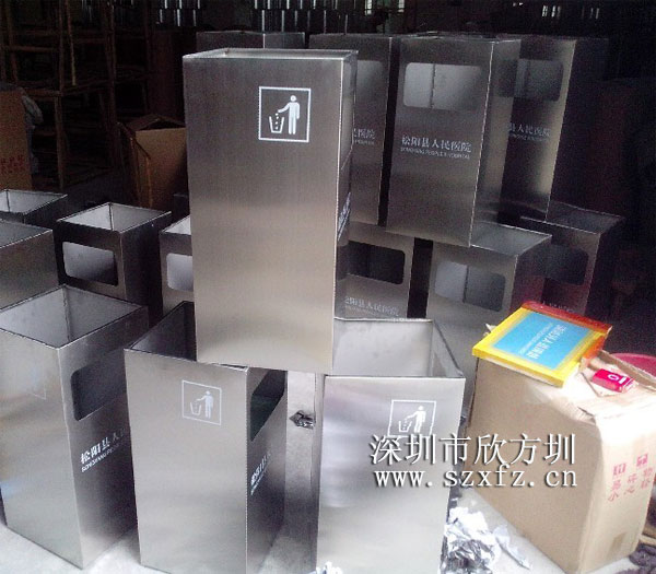 這批不銹鋼垃圾桶外觀為方形,采用201不銹鋼材質模壓而成,桶頭厚度足0.8毫米,桶身厚度也有0.6毫米,內部配0.4毫米的鍍鋅板內膽,耐酸耐堿、密度高,使用周期長,表面光滑不割手,且絲印有人頭標識和松陽縣人民醫院的字樣,完全為客戶量身打造的專屬產品! 產品完成后的包裝方面,我公司采用木架跟紙箱的方式,先用木架固定不銹鋼垃圾桶,然后再統一紙箱包裝,最大限度的避免垃圾桶不被碰損和刮傷!