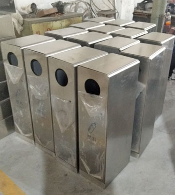 • 產品材質:戶外五分類垃圾箱根據客戶需求可采用201#,202#,304#優質不銹鋼材質模壓或焊接成型,面板可分色烤漆美觀耐用,不易破損;耐火安全,適合各種惡劣氣候條件;金屬亮澤,高雅美觀,廣泛適用于各種戶外場所;內外表面光潔,減少垃圾殘留,易于清潔;配置鍍鋅板內桶,便于垃圾清倒。