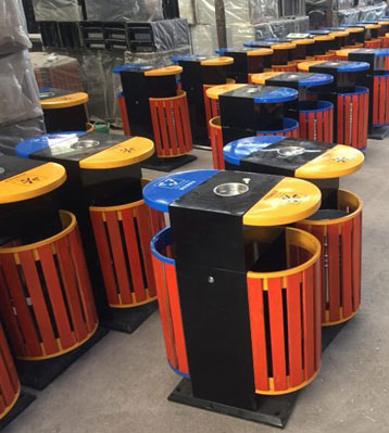 欣方圳戶外橢圓鋼木分類垃圾桶原材料
